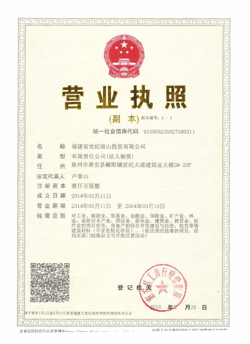 福建省世紀南(nán)山(shān)投資有(yǒu)限公司